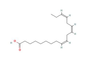 亞麻酸是化學(xué)式為C18H30O2的必需脂肪酸。它最常見的形式是α-亞麻酸,因?yàn)樗亲罘€(wěn)定和豐富的形式。 此外,亞麻酸是一種必需脂肪酸,因此,由于我們的身體無法產(chǎn)生這種脂肪酸,因此我們需要從飲食中攝取脂肪酸。此外,亞麻酸具有在順式構(gòu)型中具有3個(gè)雙鍵的18-碳鏈。 因此,我們可以將其表示為18:3順式9、12、15,其中9、12和15是具有雙鍵的碳原子。 其摩爾質(zhì)量為278.43g / mol。