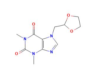 多索茶堿是一種氧代嘌呤,它是黃嘌呤的衍生物,在 N-1 和 N-3 處甲基化并在 N-7 處帶有 1,3-二氧戊環(huán)-2-基甲基,用于治療哮喘。多索茶堿具有支氣管擴張劑、鎮(zhèn)咳藥和抗哮喘藥的作用。它衍生自7H-黃嘌呤。