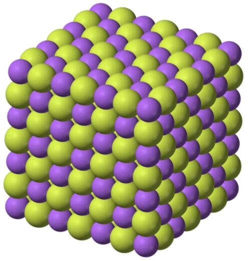 氟化鈉是由Na+離子和F-離子組成的離子化合物。氟化鈉的化學(xué)式為NaF,摩爾質(zhì)量約為 42 g/mol,它在室溫下呈綠白色固體。氟化鈉是一種無味化合物,由于是離子化合物,熔點(diǎn)和沸點(diǎn)都很高。氟化鈉的熔點(diǎn)為993℃,沸點(diǎn)約為1700℃。固體氟化鈉受熱時會生成有毒氣體:氟化氫(HF)。氟化鈉天然存在于一種名為 Villiaumite 的稀有礦物中,數(shù)量很少。因此,工業(yè)生產(chǎn)是氟化鈉的主要來源,它通常由氫氟酸與堿如氫氧化鈉反應(yīng)制備。