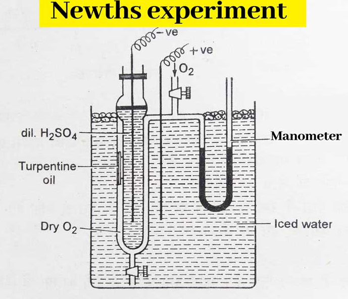 現(xiàn)在將松節(jié)油放入一個燒瓶中并加熱另一個燒瓶。第一個燒瓶中的水位上升。由于臭氧在第二個燒瓶中分解成氧氣,填充其中的氣體體積增加,因此燒瓶中的水位下降。