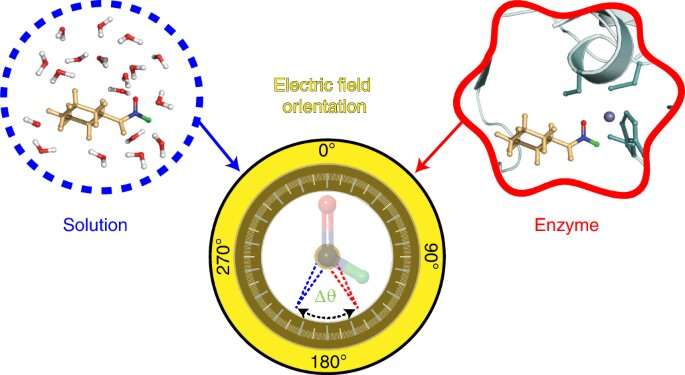 “在基本層面上,我們?cè)噲D更好地了解酶的工作原理,在這項(xiàng)研究中,我們通過(guò)引入電場(chǎng)方向來(lái)增加一個(gè)新的維度,這被認(rèn)為對(duì)酶的催化功能具有關(guān)鍵影響,”毛說(shuō),化學(xué)博士后學(xué)者,在斯坦福大學(xué)化學(xué)副教授、高級(jí)合著者 Thomas Markland 的實(shí)驗(yàn)室工作。