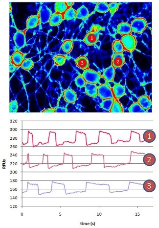 FluoVolt 膜電位染料是一種快速響應(yīng)探針,具有出色的電位依賴性熒光響應(yīng)。 響應(yīng)速度足夠快,可以檢測可興奮細(xì)胞中的瞬時(shí)(毫秒)電位變化,并且探針每 100 mV 產(chǎn)生超過 25% 的信號變化。 FluoVolt 膜電位染料可用于對完整心臟組織的電活動進(jìn)行成像,繪制沿神經(jīng)元和肌肉纖維的膜電位,或測量響應(yīng)藥理刺激的電位變化。