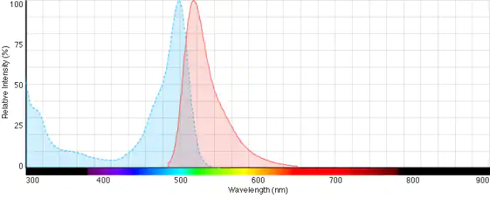 6. 在所需的 Ex/Em 波長下運(yùn)行熒光顯微鏡或其他設(shè)備(熒光素鬼筆環(huán)肽,Ex/Em=497/516 nm)。