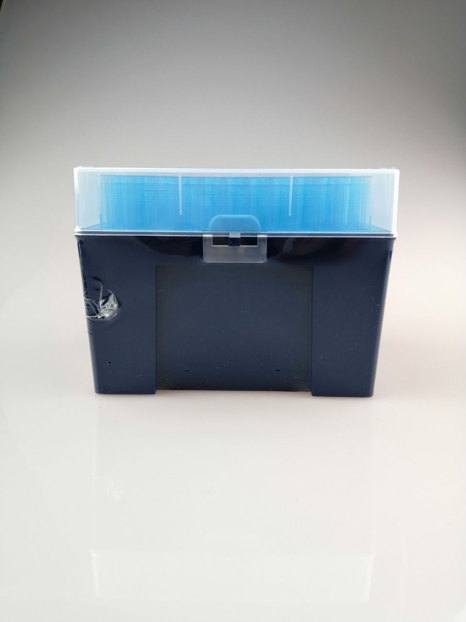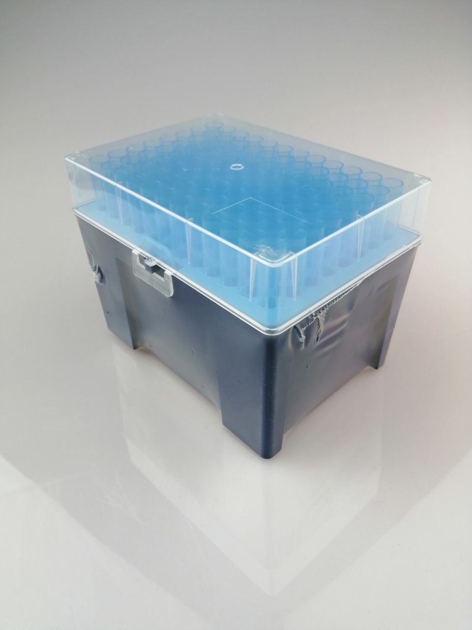 | Introduction | Boxed sterile enzyme-free 1000ul blue tips, enzyme-free tips Product features: inert and non-enclosed polyethylene filter element; the tips are vacuum sealed in a hinged tip holder sterilized by irradiation; not autoclavable ; Certified free of DNA, DNase, RNase and endotoxin. |