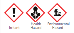 | 防范說明代碼 | P261, P272, P273, P280, P285, P302+P352, P304+P341, P321, P333+P313, P342+P311, P363, P391, and P501 |